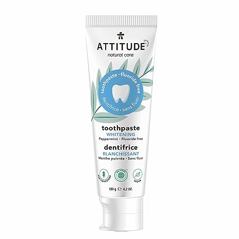 ATTITUDE Fluoride-Free Toothpaste, Plant- and Mineral-Based Ingredients, Vegan, Cruelty-Free and Sugar-Free, Whitening, Peppermint, 4.2 Oz (16741)