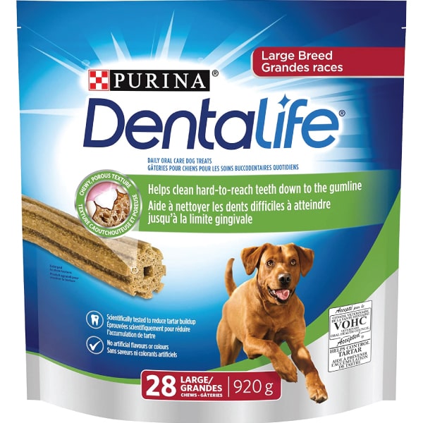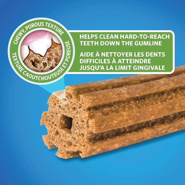 Dog chew with eight distinct ridges and a porous texture help clean hard-to-reach teeth down to the gumline and keep plaque off your dog’s teeth